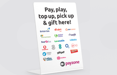 Payzone partnership wobblerA self-adhesive POS containing a selection of partner names, all available via your Payzone Plus Device.