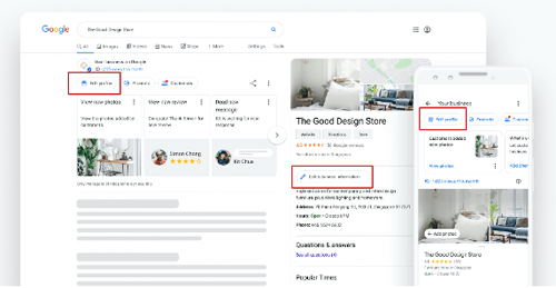 If you want to make any changes to your Google My business profile once it has been populated and is live, you can do so easily by clicking ‘Edit Profile’ at the top of the page. Here you can update existing information like opening hours or add new information such as photos, videos and a website URL for customers to learn more about your store.